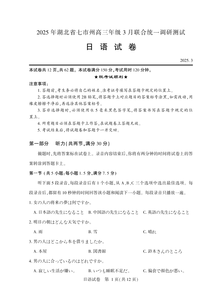 2025年湖北省七市州高三年级3月联合统一调研测试 日语.pdf