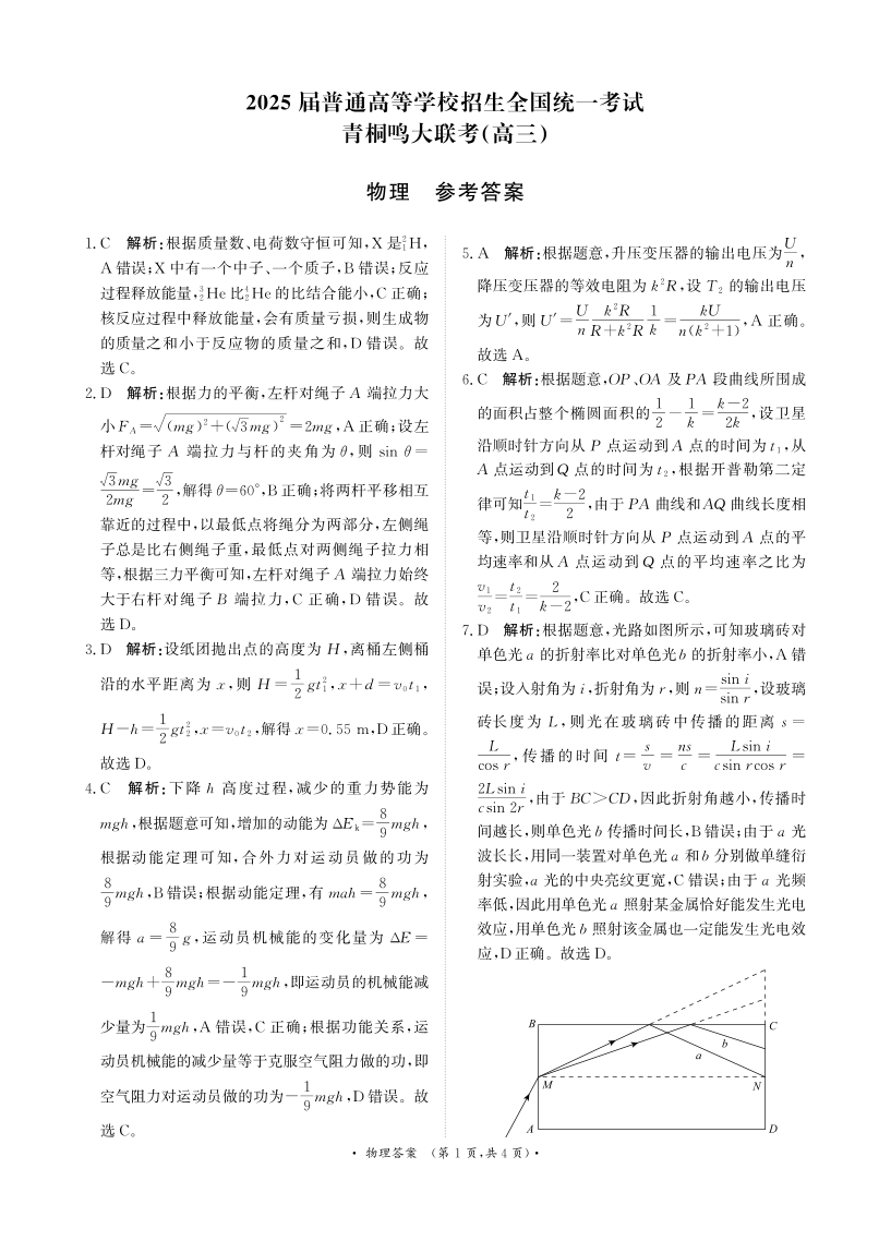 河南省2025届高三青桐鸣3月大联考 物理答案.pdf