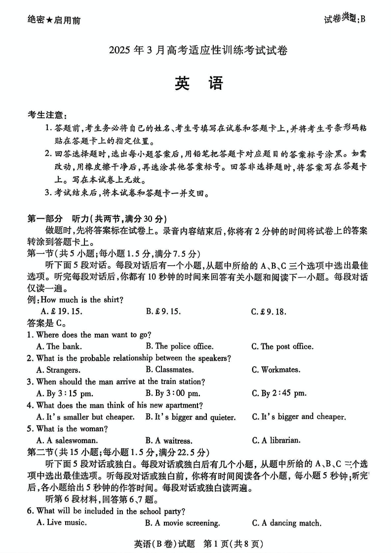 山西省晋中市2025年3月高考适应性训练考试 英语.pdf