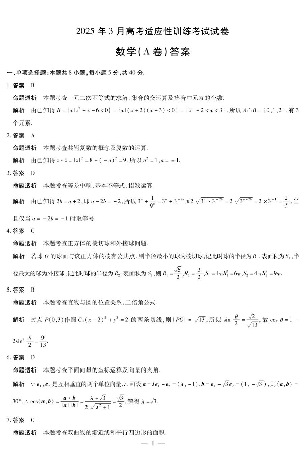 山西省晋中市2025年3月高考适应性训练考试 数学答案.pdf