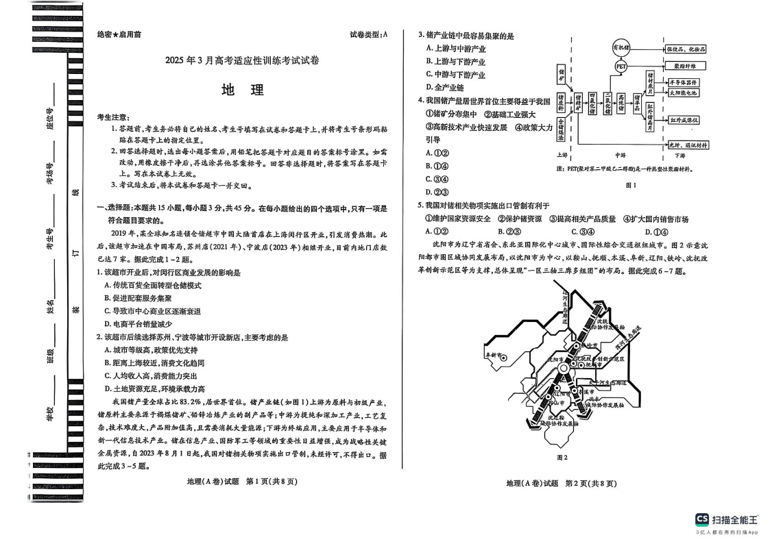 山西省晋中市2025年3月高考适应性训练考试 地理.pdf
