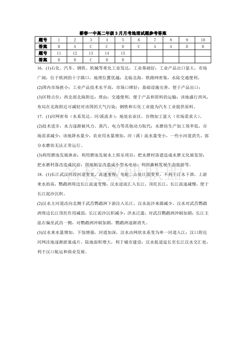 2025年春蕲春一中高二3月月考 地理答案.pdf