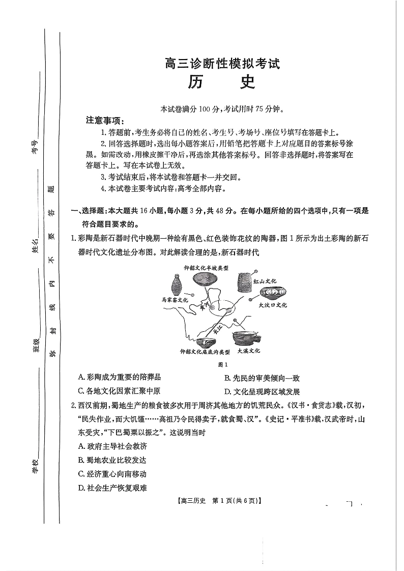 河北省部分学校2025届高三诊断性模拟考试 历史.pdf