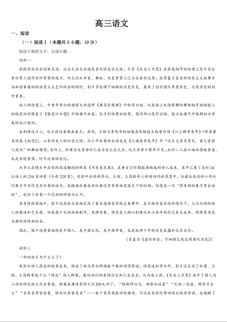 吉林省通化市梅河口市第五中学2025届高三下学期一模 语文(含答案).docx