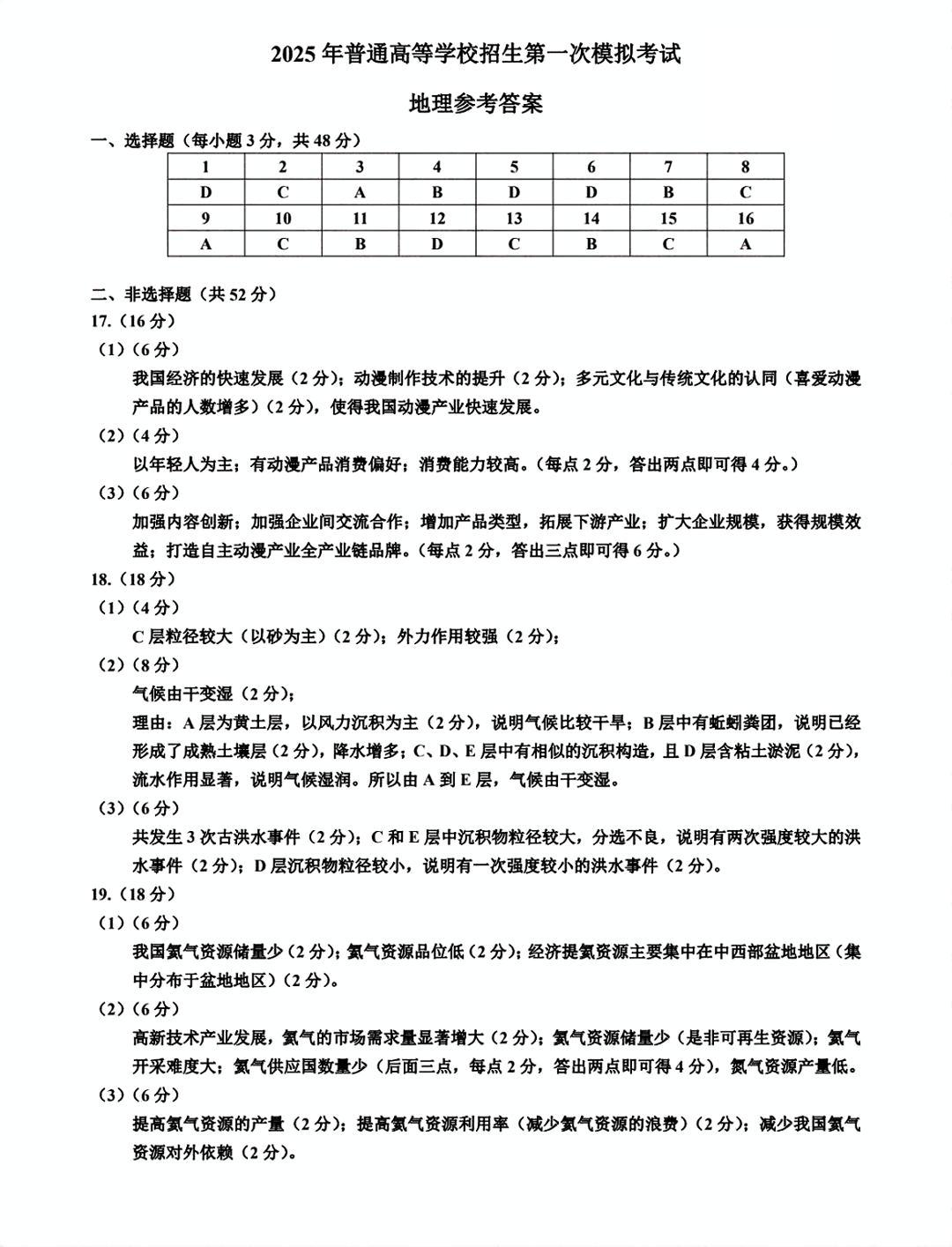 内蒙古自治区呼和浩特市2025届高三第一次模拟考试 地理答案.pdf