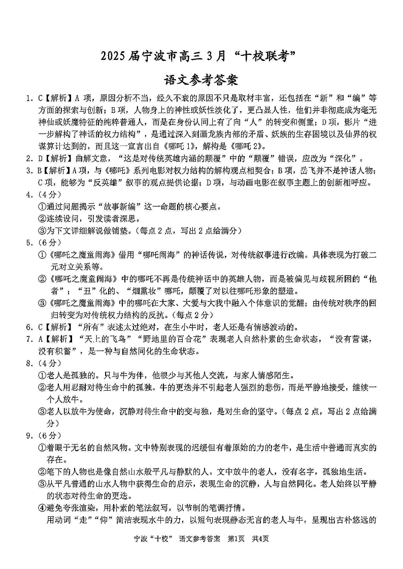 浙江省宁波“十校”2025届高三3月联考 语文答案.pdf