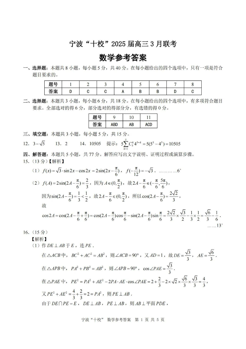 浙江省宁波“十校”2025届高三3月联考 数学答案.pdf