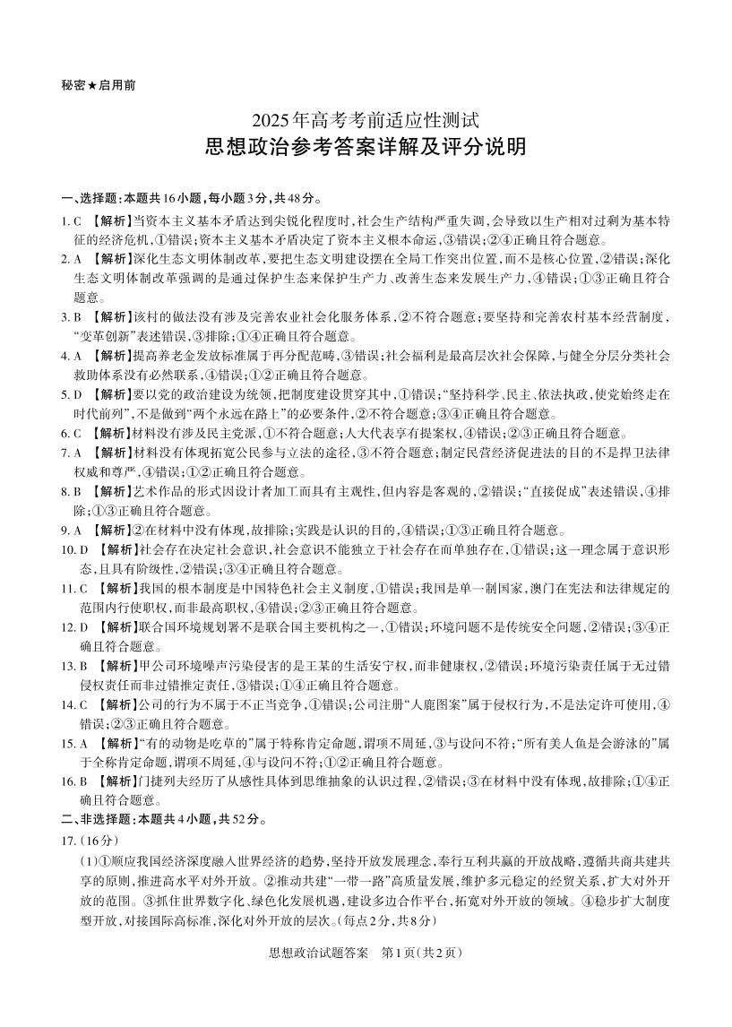 山西省思而行2025年3月高考适应性测试 政治答案.pdf