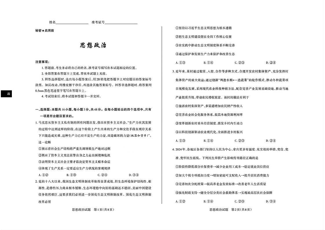 山西省2025年高考考前适应性测试 政治.pdf