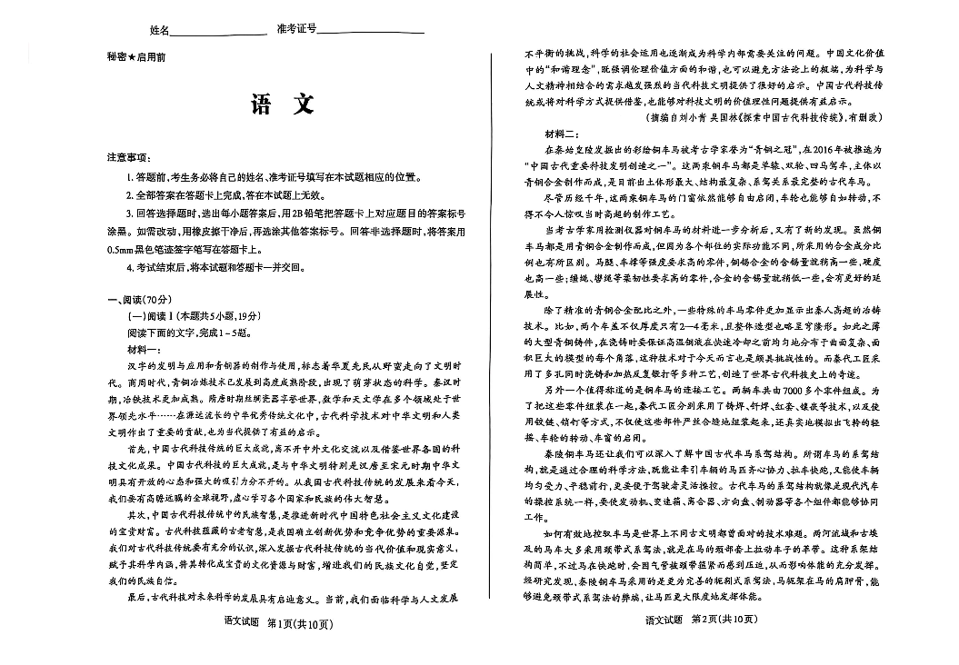 山西省2025年高考考前适应性测试 语文.pdf