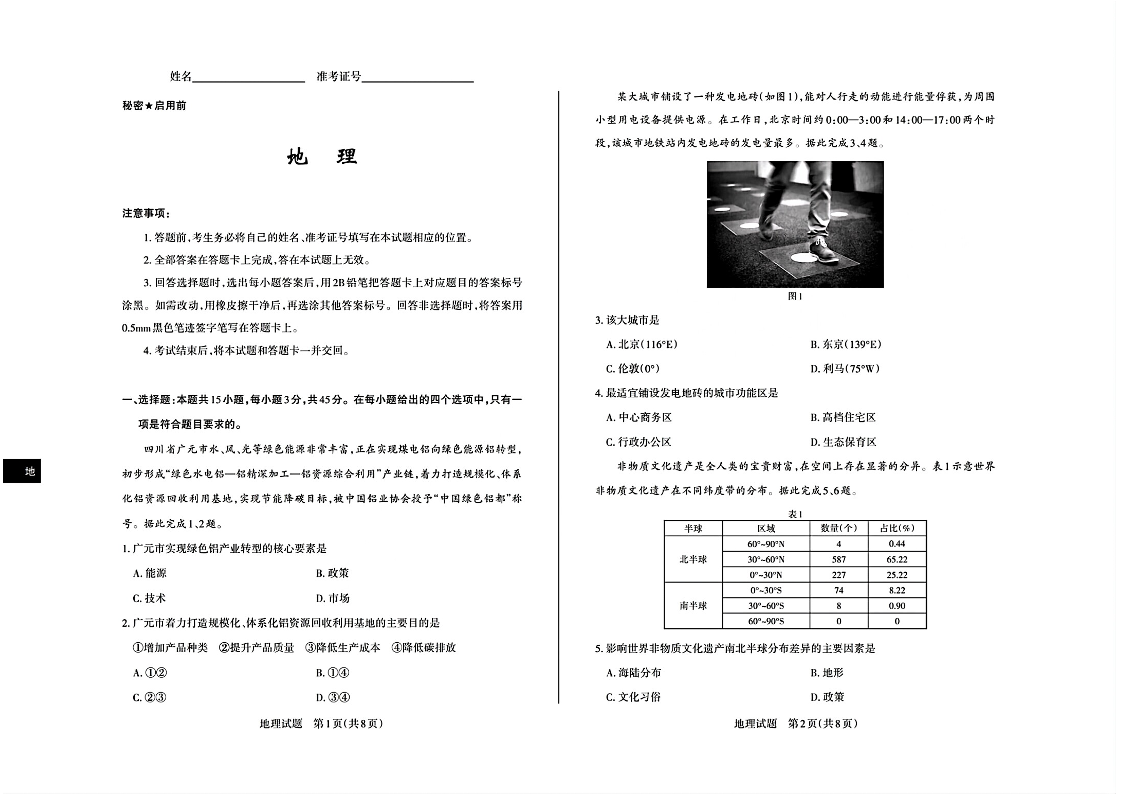 山西省2025年高考考前适应性测试 地理.pdf