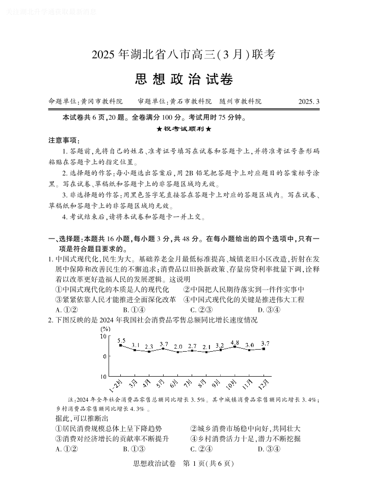 2025年湖北省八市高三(3月)联考 政治.pdf