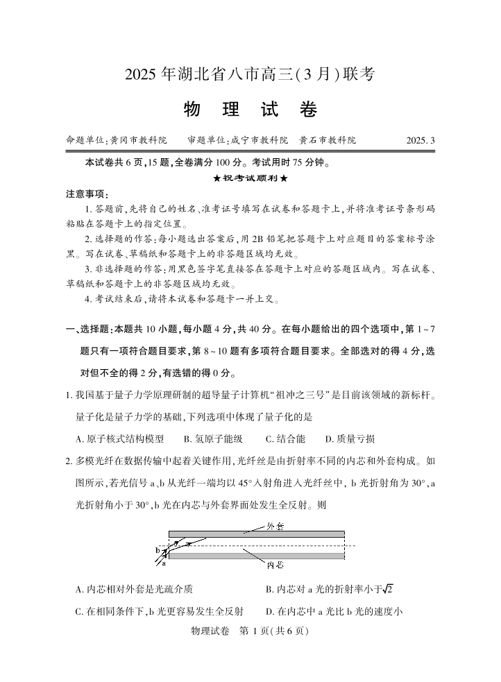 2025年湖北省八市高三(3月)联考 物理.pdf