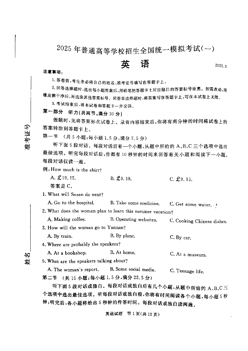 河北省承德、张家口市2025届高三下学期统一模拟考试(一)英语.pdf