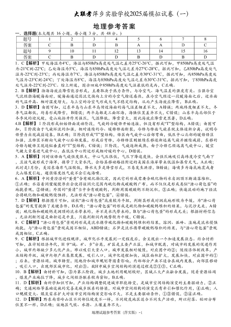 江西省萍乡实验学校2025届高三模拟试卷(一)地理答案.pdf