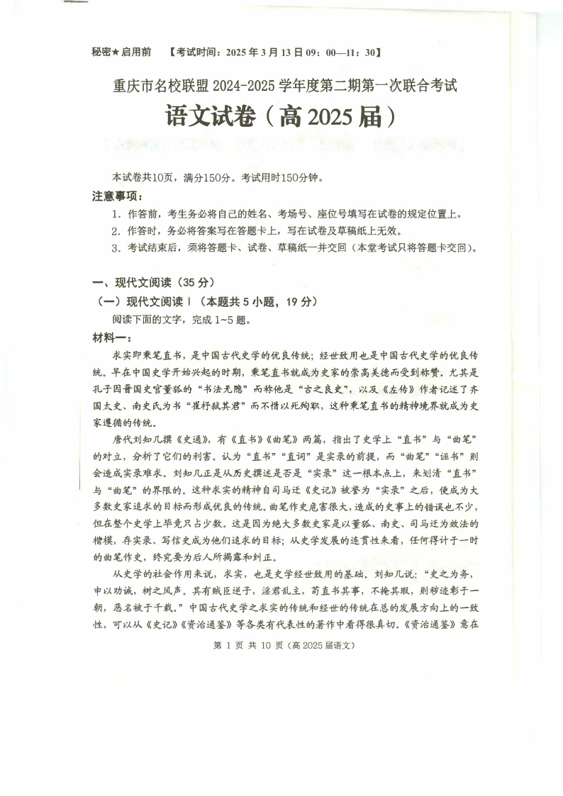 重庆市名校联盟2024-2025学年度第二期第一次联合考试 语文.pdf