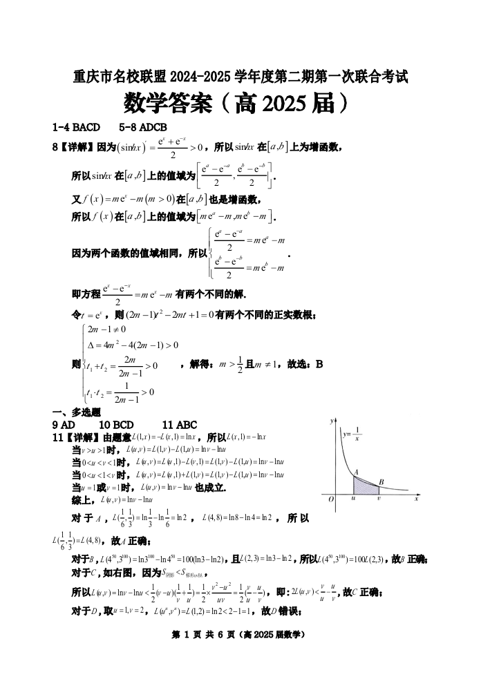 重庆市名校联盟2024-2025学年度第二期第一次联合考试 数学答案.pdf