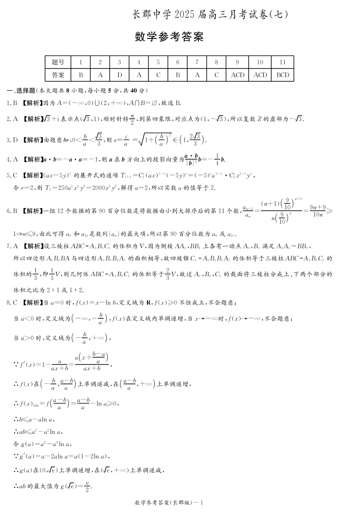 湖南省炎德·英才大联考长郡中学 2025 届高三月考试卷(七)数学答案.pdf