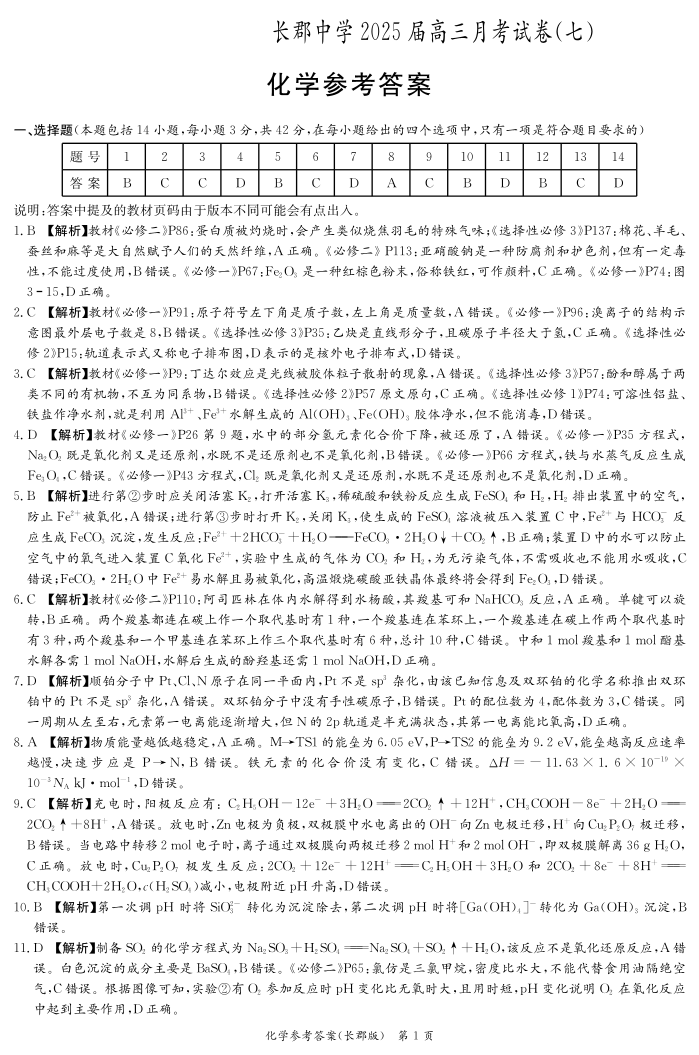 湖南省炎德·英才大联考长郡中学 2025 届高三月考试卷(七)化学答案.pdf