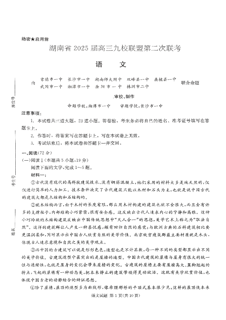 湖南省2025届高三九校联盟第二次联考 语文.pdf