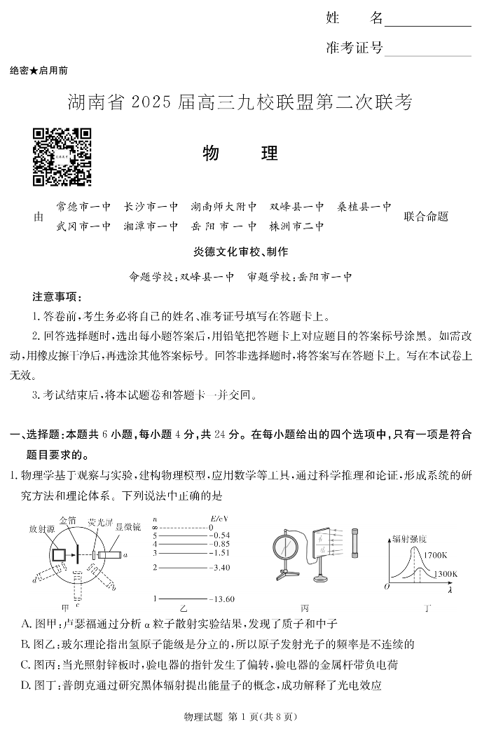 湖南省2025届高三九校联盟第二次联考 物理.pdf