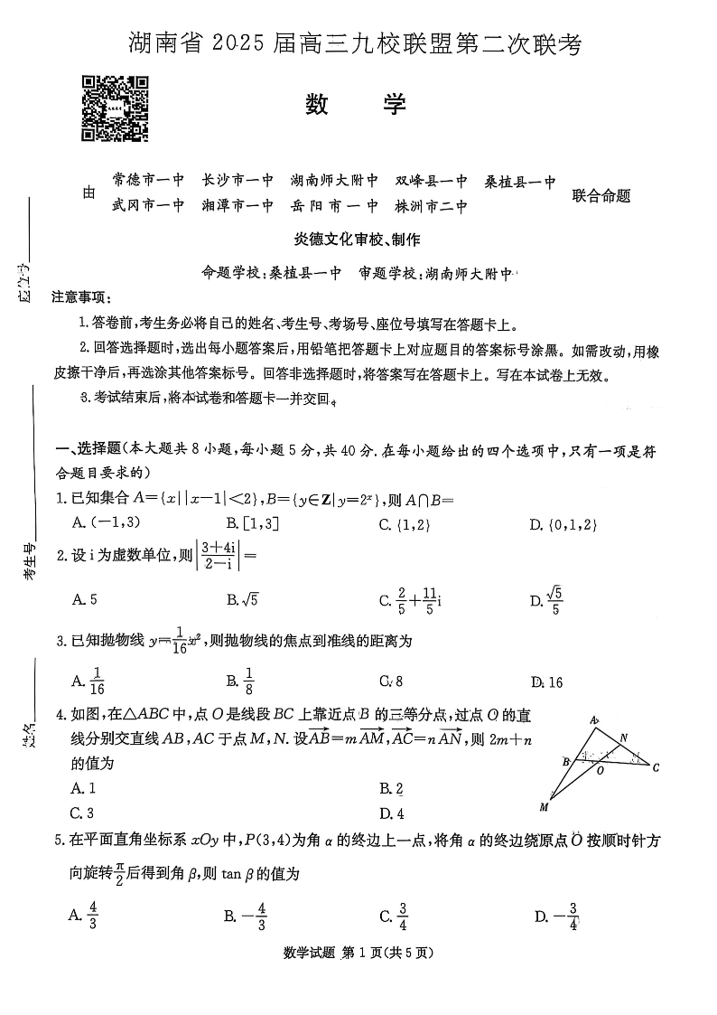 湖南省2025届高三九校联盟第二次联考 数学.pdf