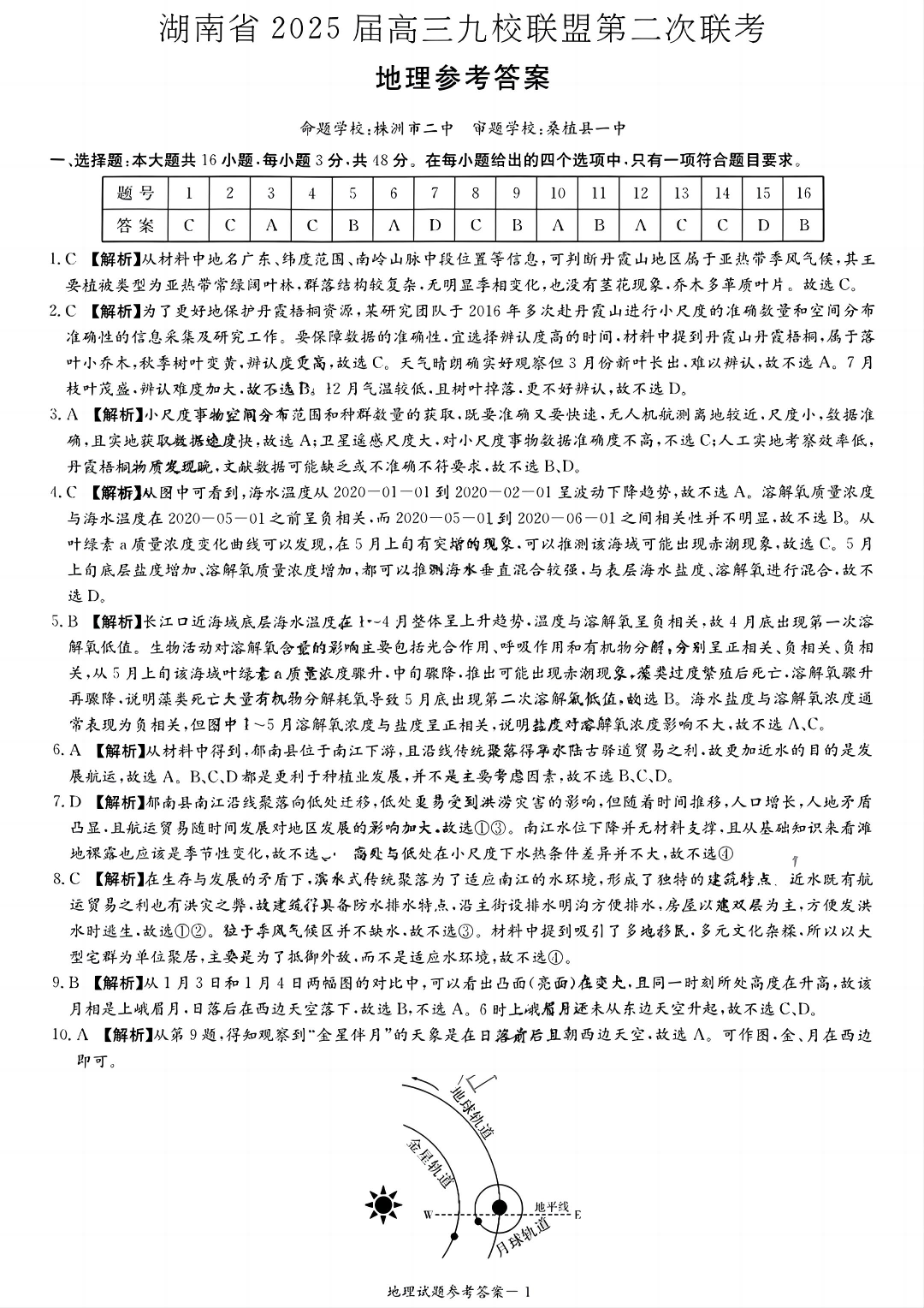 湖南省2025届高三九校联盟第二次联考 地理答案.pdf