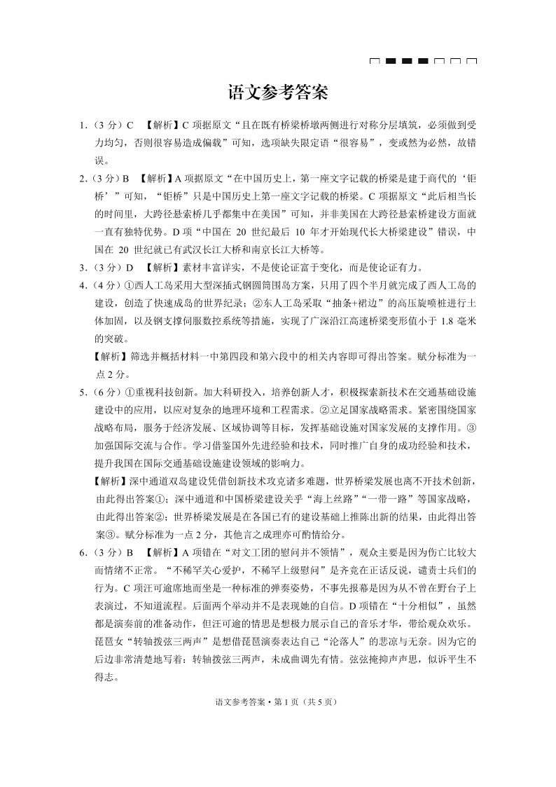 重庆市巴蜀中学高2025届高三3月适应性月考卷(六)语文答案.pdf