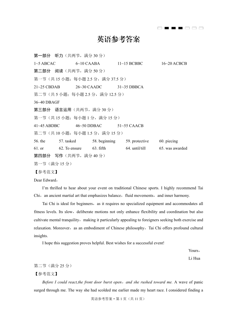 重庆市巴蜀中学高2025届高三3月适应性月考卷(六)英语答案.pdf
