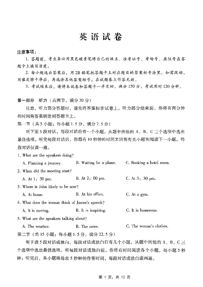 重庆市巴蜀中学高2025届高三3月适应性月考卷(六)英语.pdf