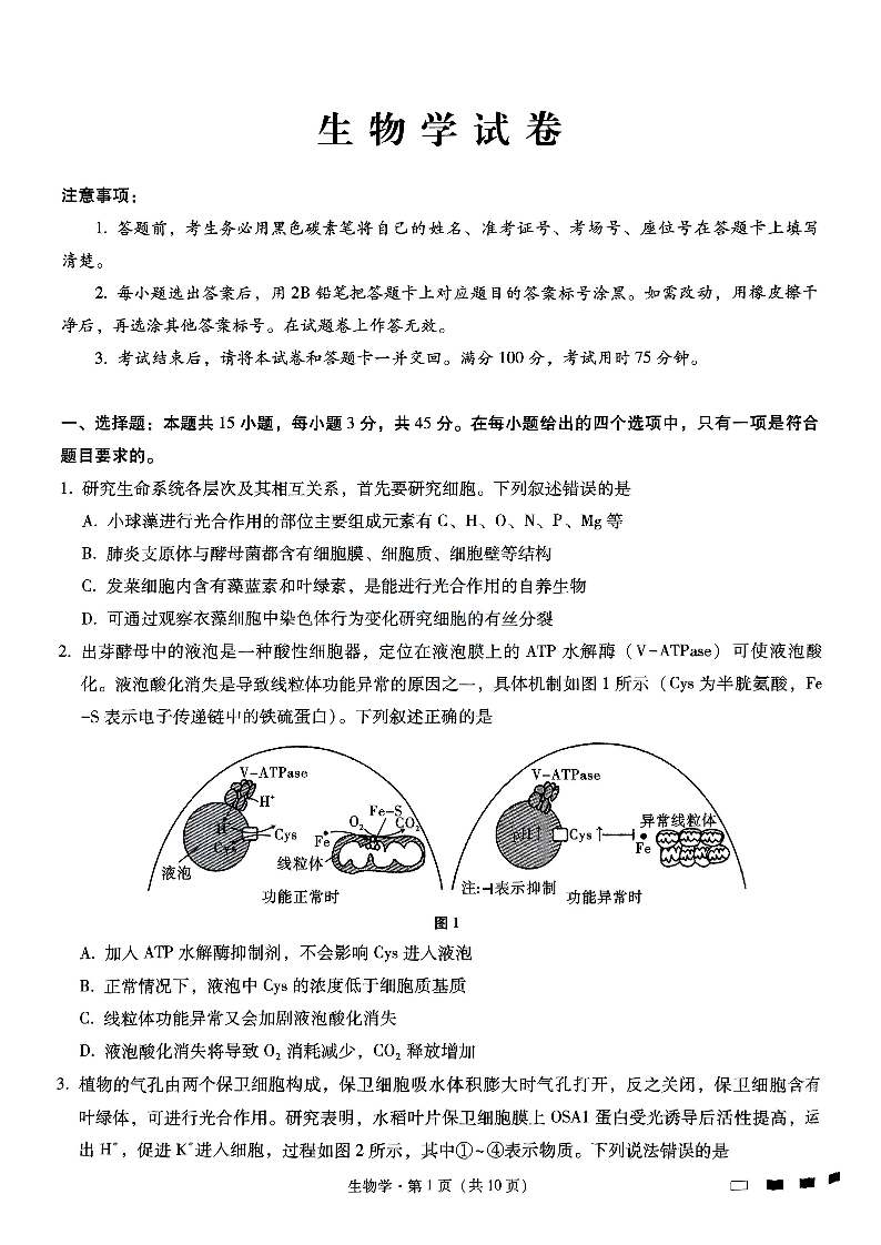 重庆市巴蜀中学高2025届高三3月适应性月考卷(六)生物.pdf