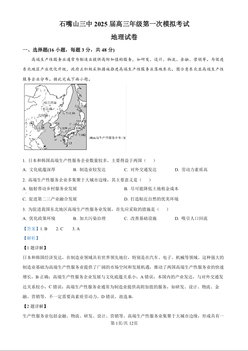 宁夏石嘴山市第三中学2025届高三下学期第一次模拟考试 地理答案.docx