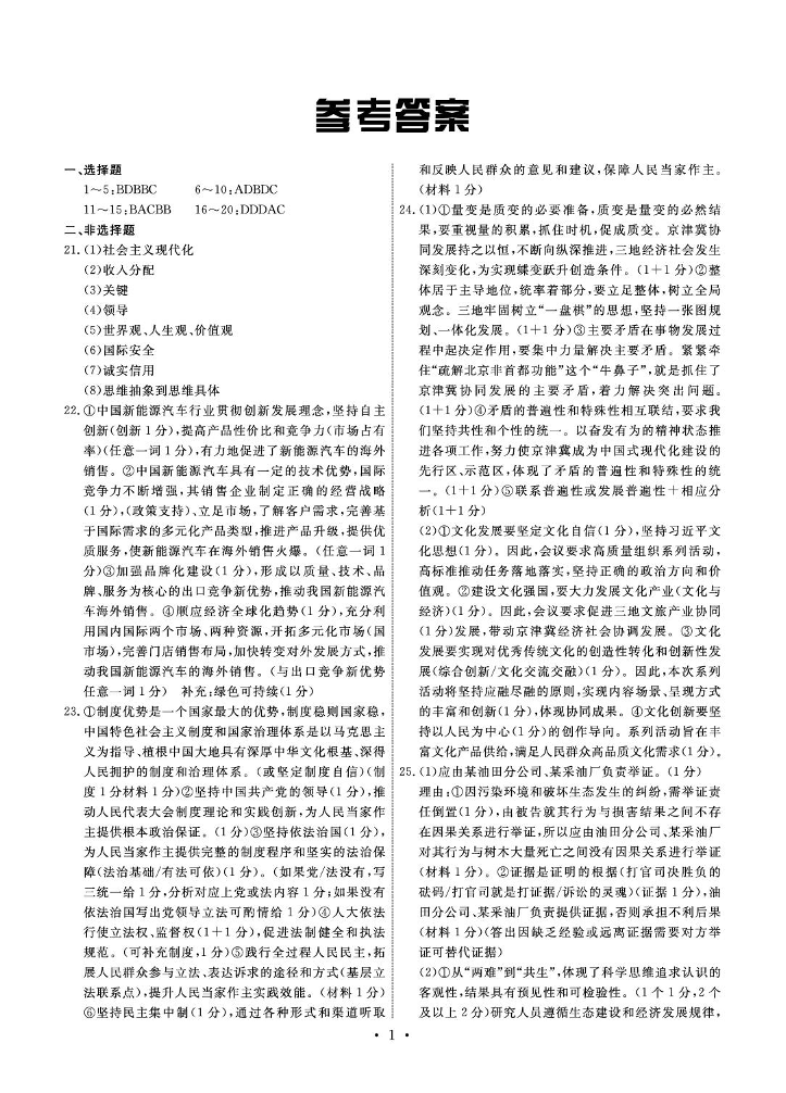 河北省衡中同卷2025届高三下学期综合素质评价(一)政治答案.pdf