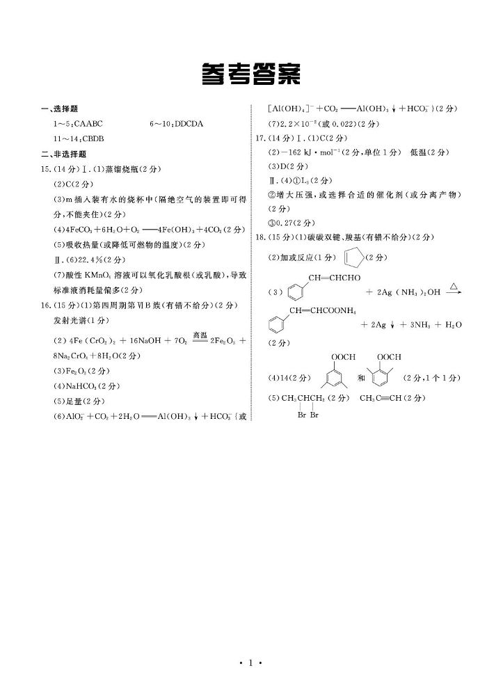 河北省衡中同卷2025届高三下学期综合素质评价(一)化学答案.pdf
