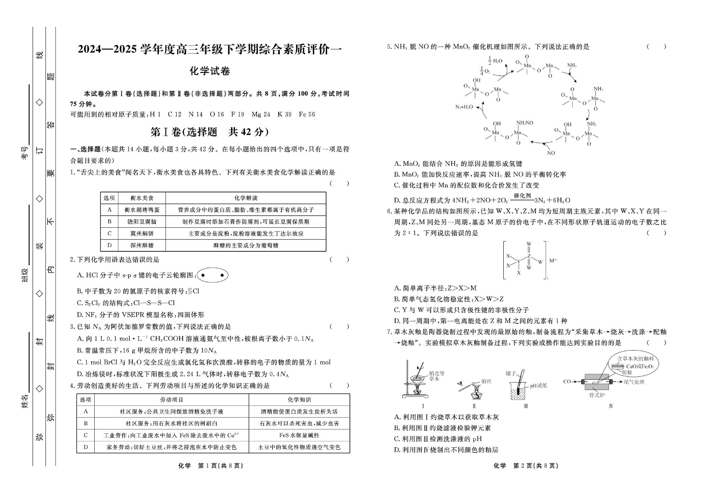 河北省衡中同卷2025届高三下学期综合素质评价(一)化学.pdf
