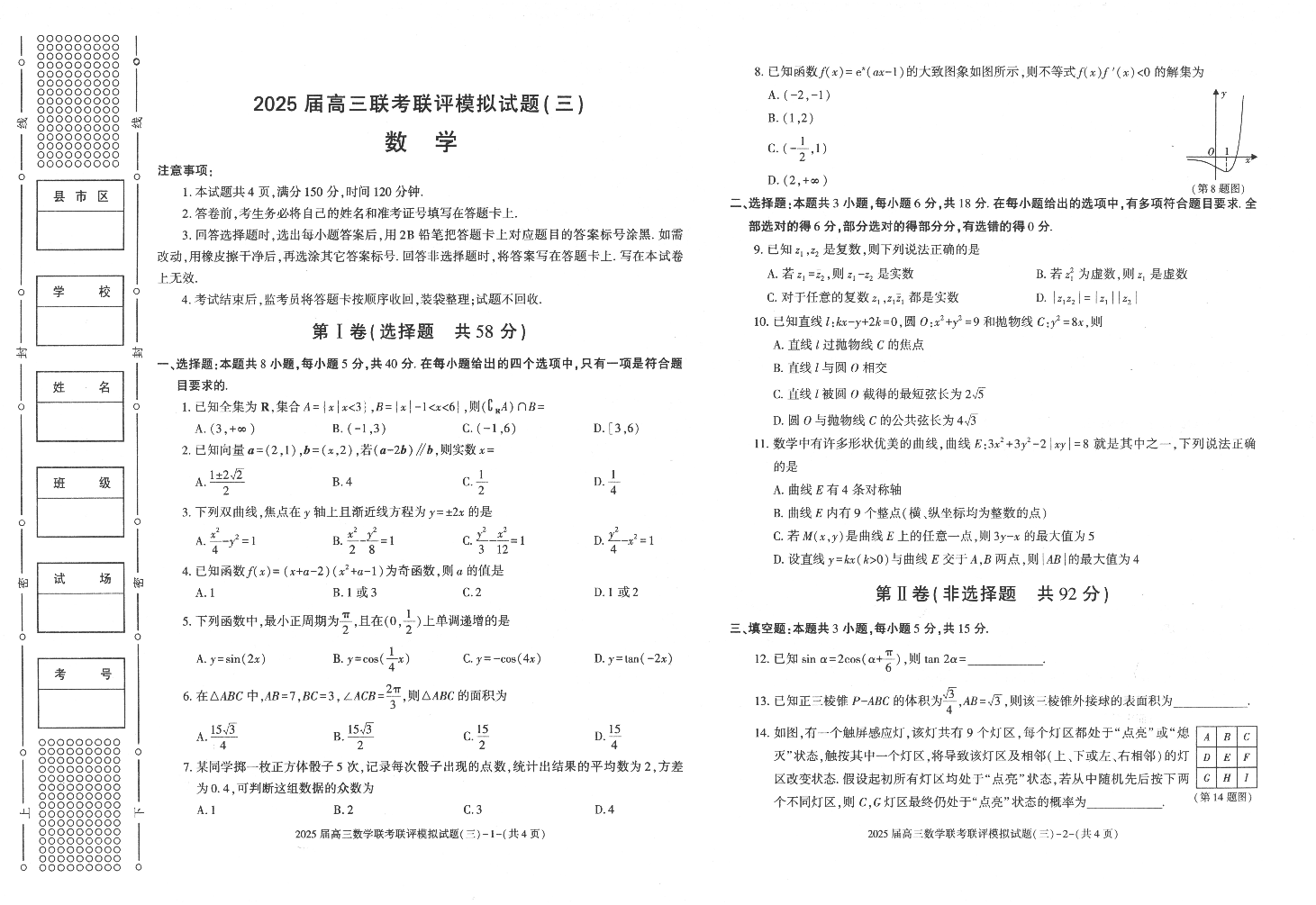 陕西省渭南市2025届高三联考联评模拟试题(三)数学(含答案).pdf