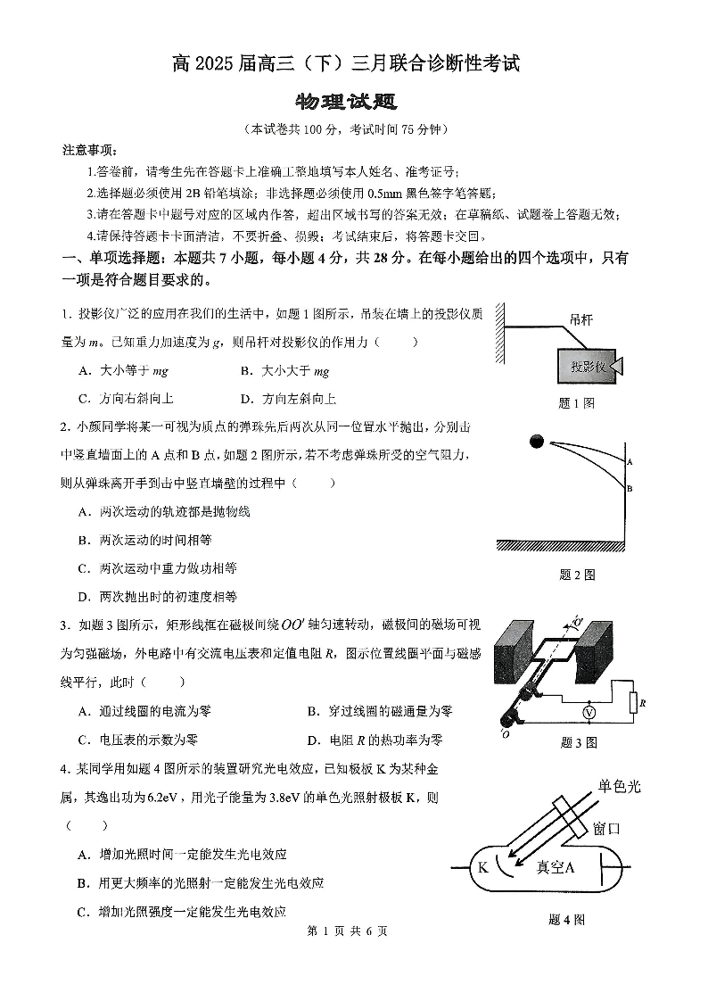 西附、育才、鲁巴高三3月联考 物理.pdf
