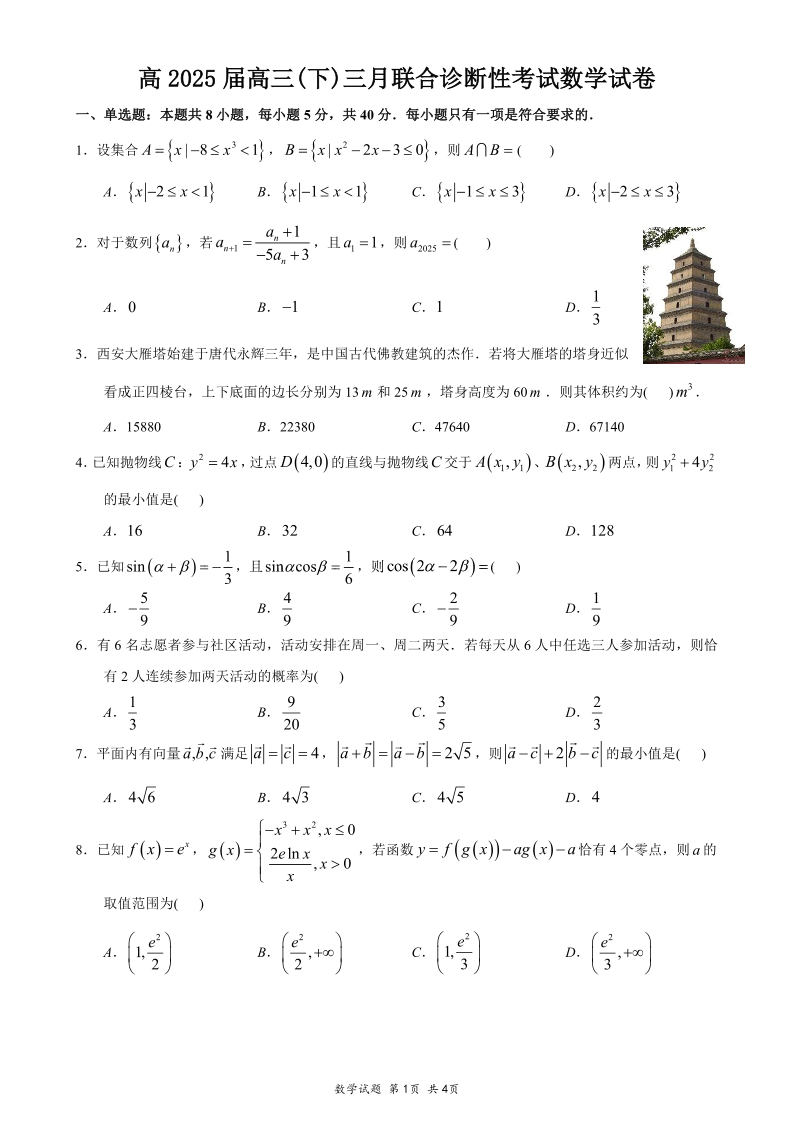 西附、育才、鲁巴高三3月联考 数学.pdf