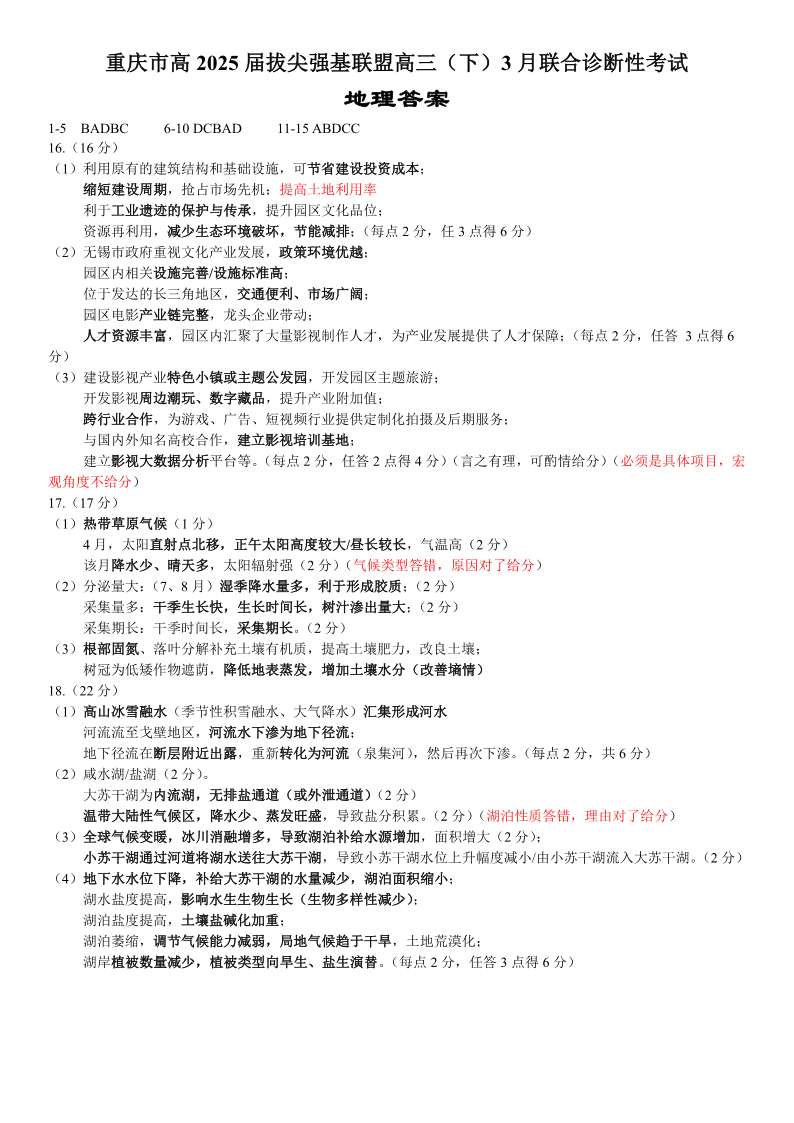 西附、育才、鲁巴高三3月联考 地理答案.pdf
