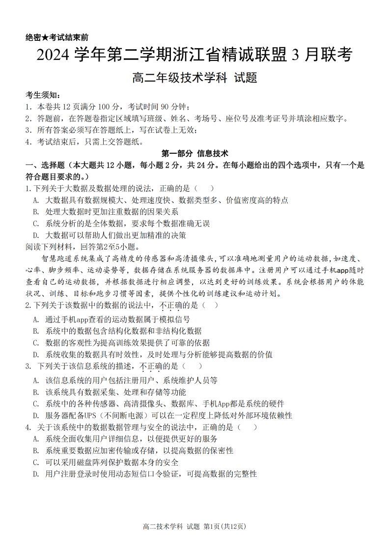 浙江省精诚联盟2024学年高二第二学期3月联考 技术.pdf