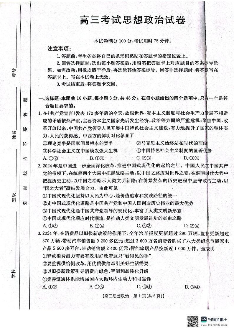 辽宁省辽阳市2025届高三下学期第一次模拟考试(辽阳一模)政治(含答案).pdf