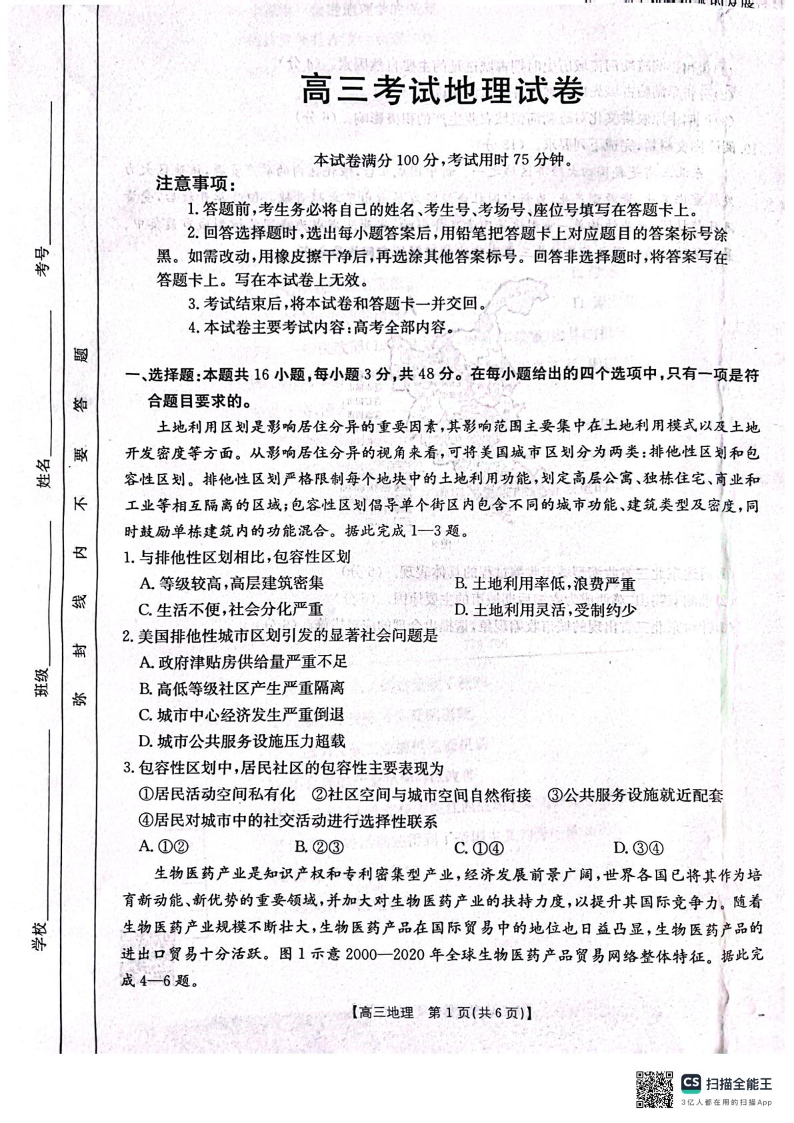 辽宁省辽阳市2025届高三下学期第一次模拟考试(辽阳一模)地理(含答案).pdf