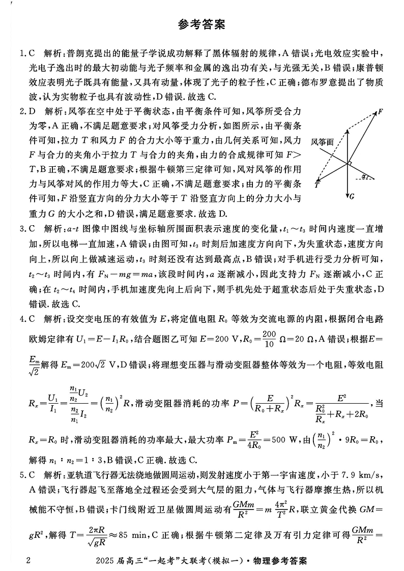 湖南省2025届高三“一起考”大联考(模拟一)物理答案.pdf