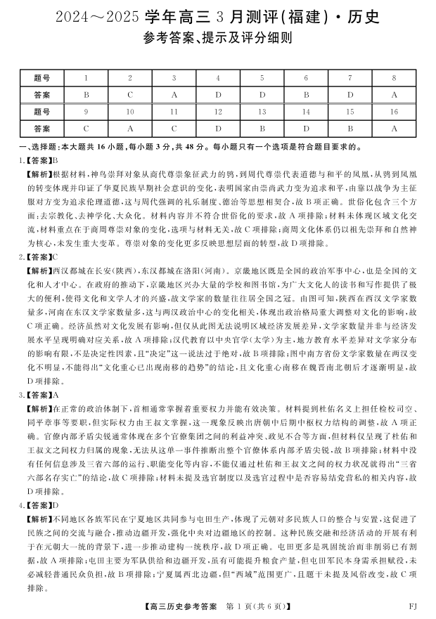 福建省部分地市校2025届高中毕业班3月质量检测 历史答案.pdf