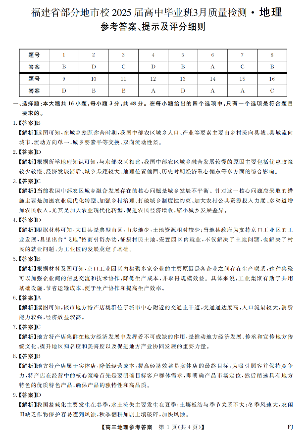 福建省部分地市校2025届高中毕业班3月质量检测 地理答案.pdf