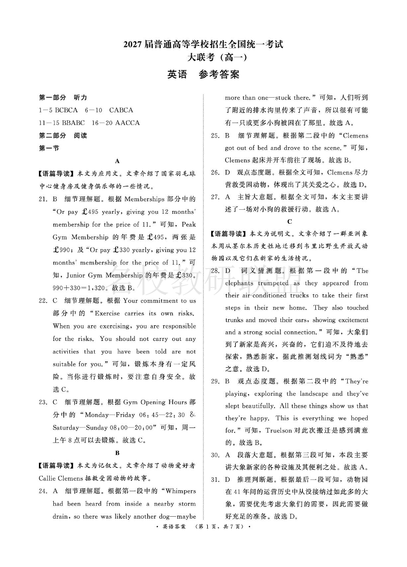 河南省部分名校2024-2025学年高一下学期3月联考 英语答案.pdf