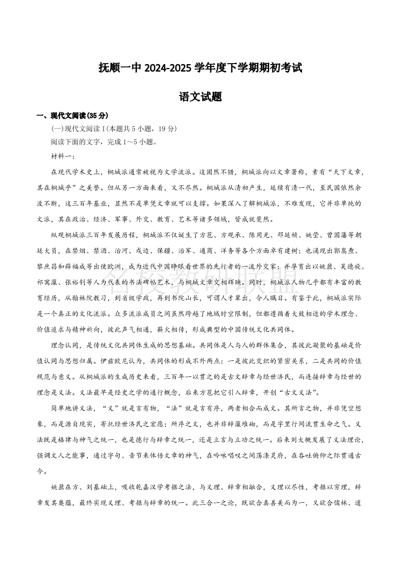 辽宁省抚顺一中2024-2025学年高一下学期期初考试 语文.pdf
