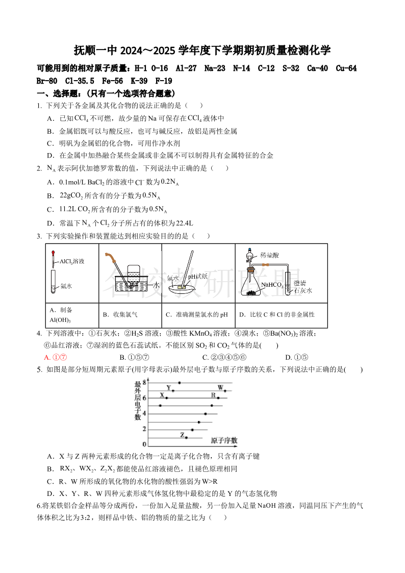 辽宁省抚顺一中2024-2025学年高一下学期期初考试 化学.pdf