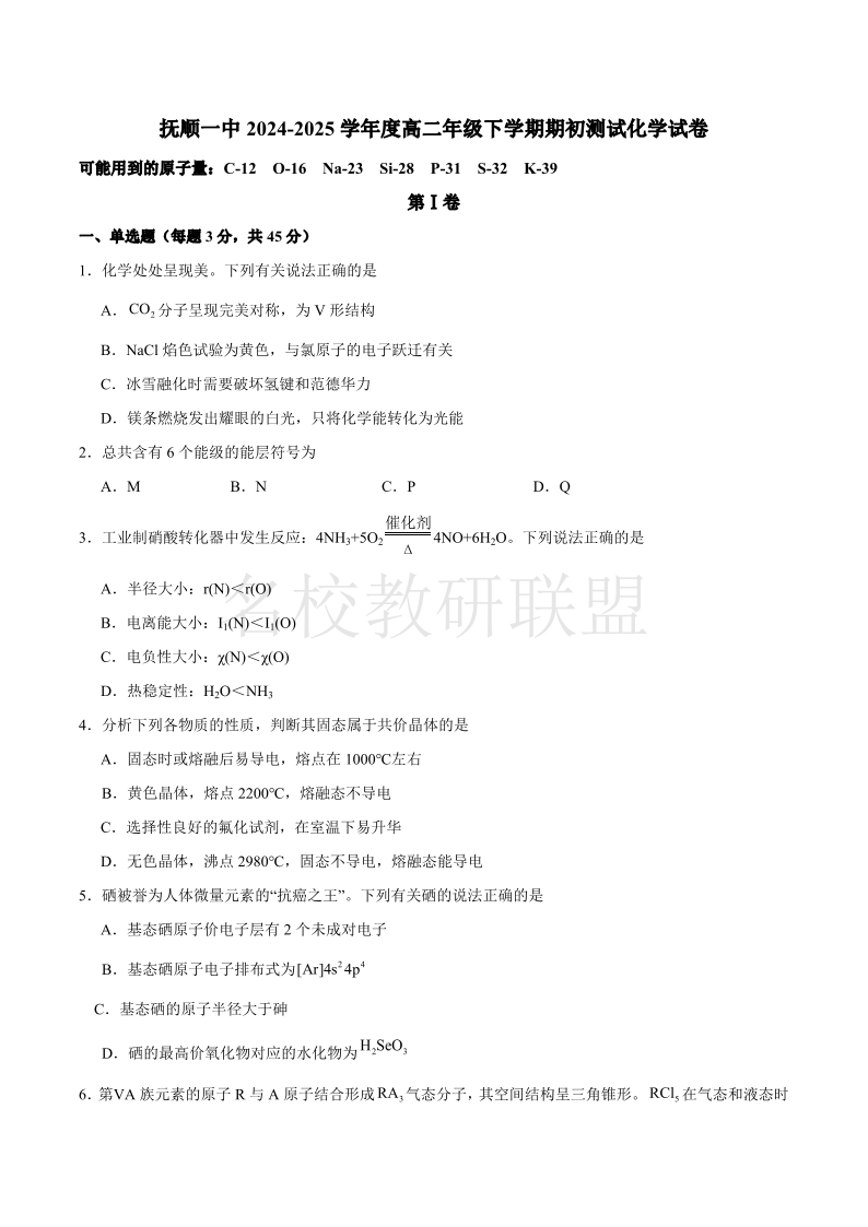 辽宁省抚顺一中2024-2025学年高二下学期期初考试 化学.pdf