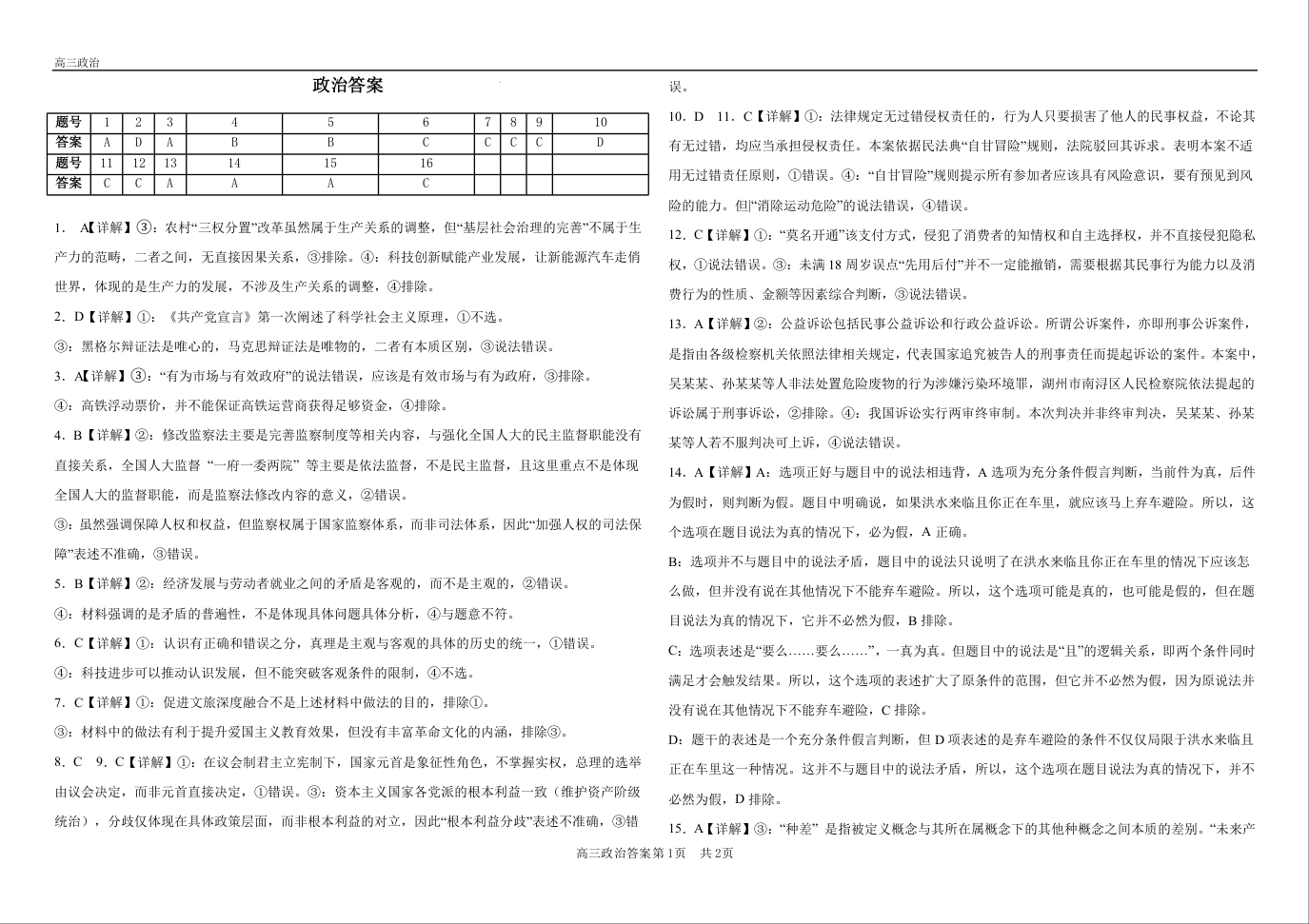 河南省驻马店市重点高中2025届高三下期第三次考试 政治答案.doc